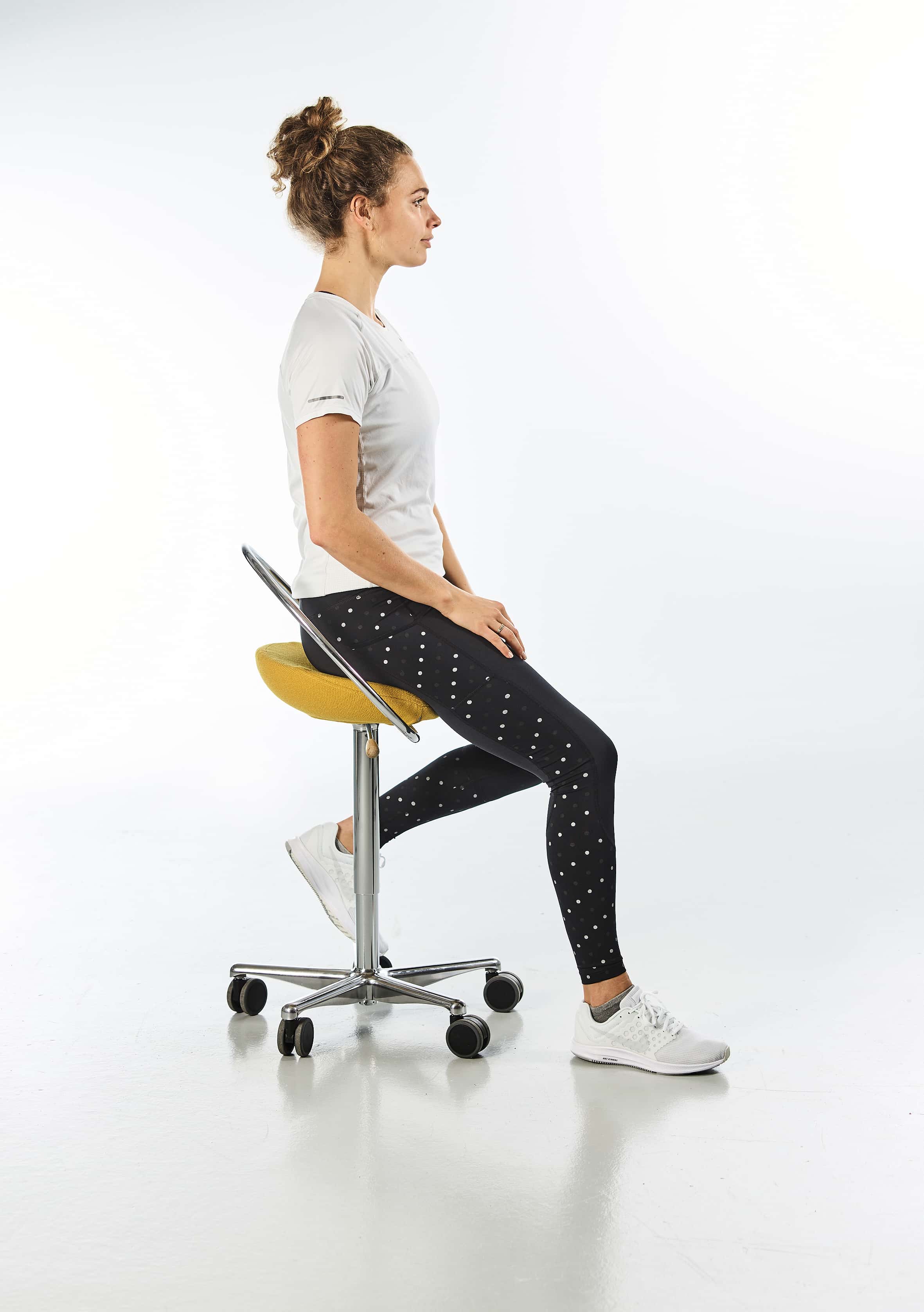 Enten du jobber på kontor, klinikk, sykehus eller barnehage, er det viktig å kunne bevege seg fritt. Stolene våre er designet uten tradisjonelle ryggstøtter og armlener, noe som gir deg full bevegelsesfrihet til å nå, snu og endre stilling uten problemer.